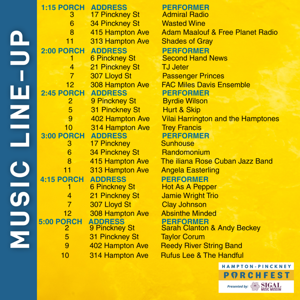 Join us for an afternoon of music and community at the fifth annual Hampton-Pinckney PorchFest!