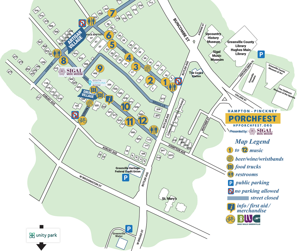 This event is planned by residents of the Hampton-Pinckney Historic District and is 100% funded by the generous donations from our sponsors in order to make this a free event and open to the community, their friends and families. Hampton-Pinckney Porchfest is now a special event that is a destination and draw for people all over the country, and is recognized by the City of Greenville as a contribution to what makes Greenville a cool place to live.